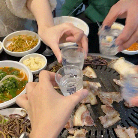 소주 한 잔 입에 털어넣어준뒤 한 입에 와구와구